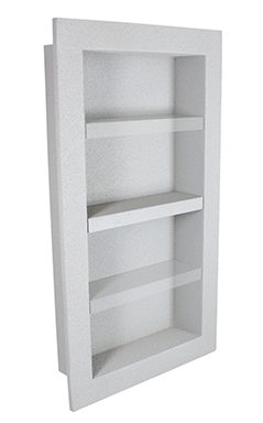 PolyNiche is an Expanded Polystyrene (EPS) product consisting of a liquid applied waterproof membrane, then coated with an acrylic polymer finish. It’s primary function is to act as an in-wall recessed shower accessory used in commercial and residential shower or tub stalls. PolyNiche is currently available in a variety of sizes to meet the needs of installers, and fabricators.